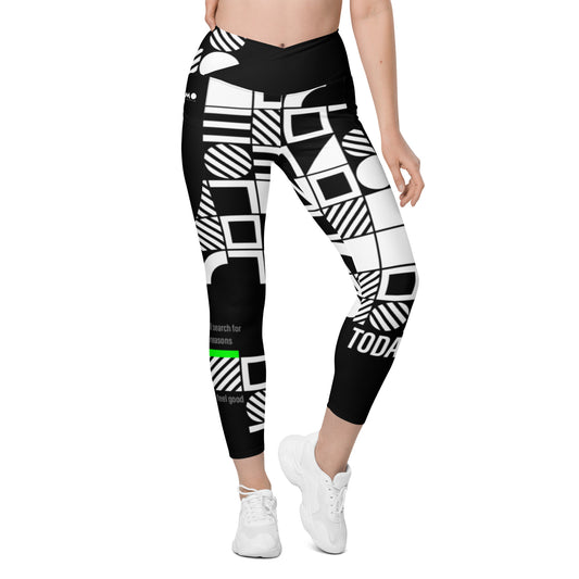 Crossover leggings with pockets / Dark inscription design